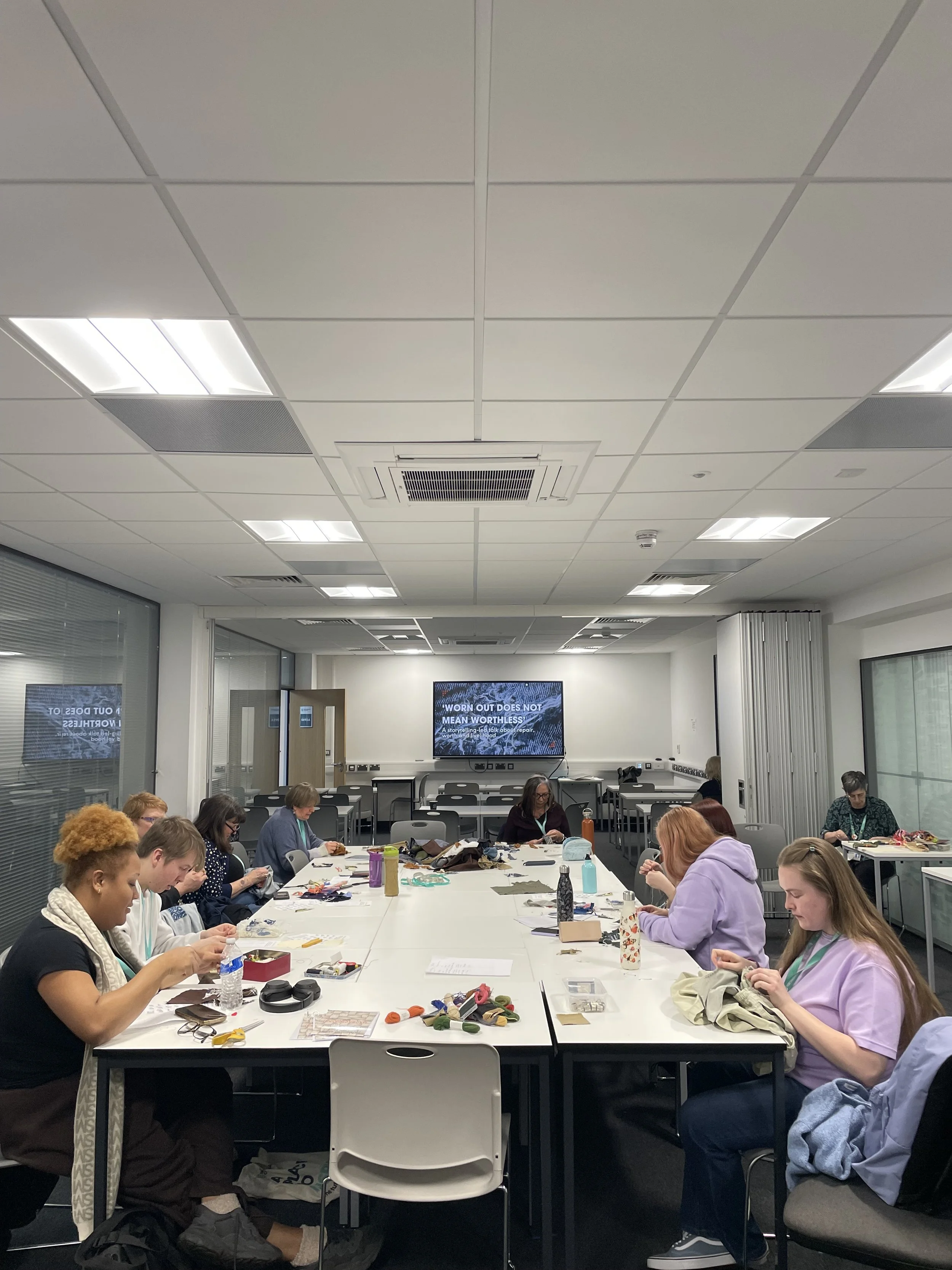 I run regular demonstrations throughout the session teaching Sashiko and Boro techniques so people can learn at their own pace. This format works brilliantly for festivals, community events, and larger gatherings where people want to drop in and out.